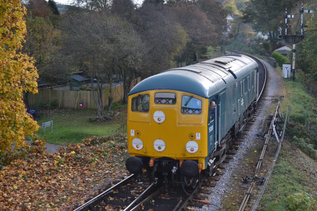 BR Blue Class 24 No. D5081 backs onto its train at Buckfastleigh to form a service to Totnes during the South Devon Railway’s Diesel Gala on 5th November 2016. At the controls is driver Jon Morton, railway royalty in his own right! © Mark Simmons-Jenkins