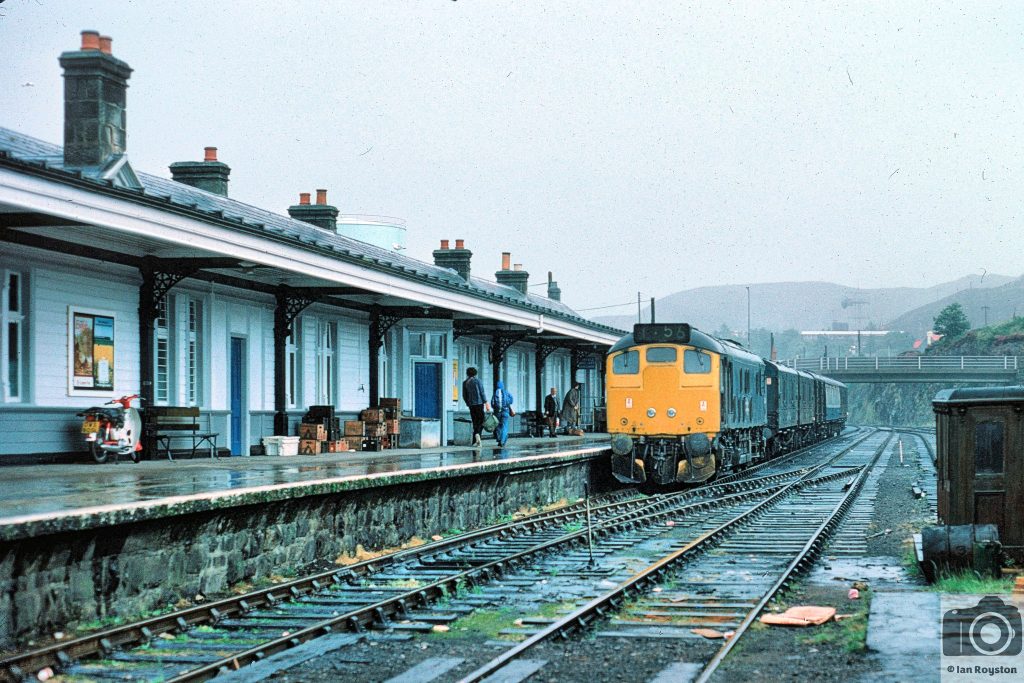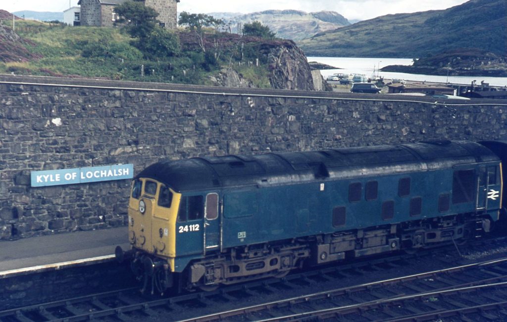 Class 24 No. 24112 waits at Kyle of Lochalsh with the evening Inverness working, circa 1973 (possibly 1974). The photographer had arrived earlier by ferry from Mallaig, then a regular rail–sea connection in the days when the future of the Kyle line was far from secure. © Phil Binding