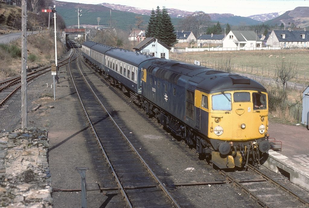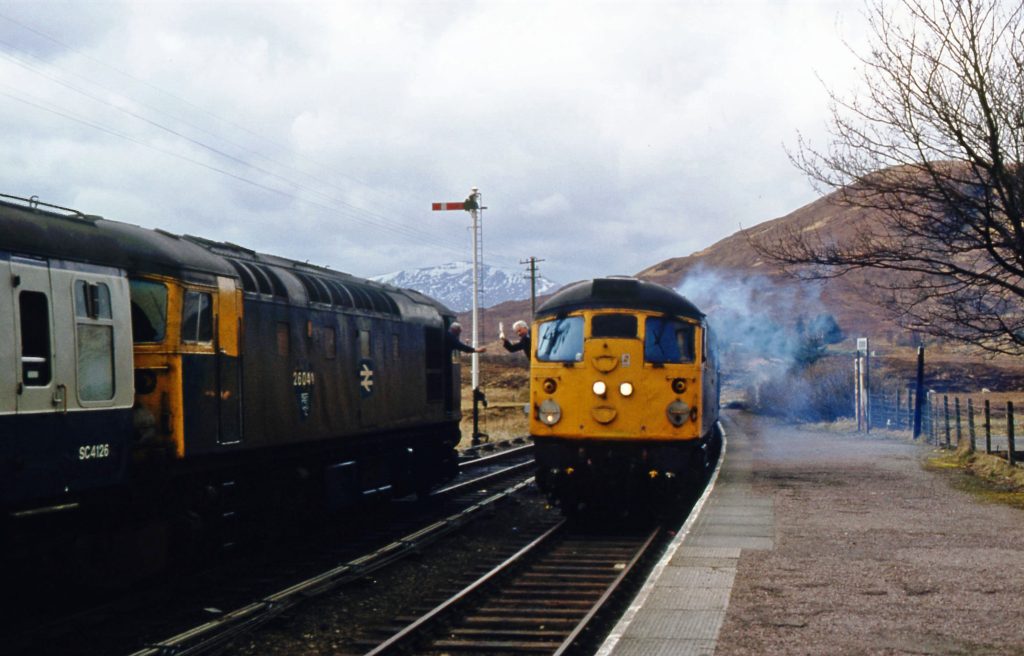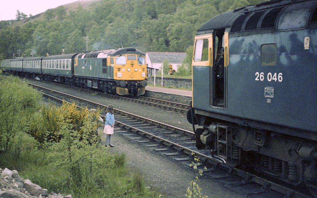 Throughout the 1960s and 1970s the Class 26s were central to operations across the north of Scotland. They handled stopping trains to Kyle of Lochalsh, mail and passenger services to Wick and Thurso and a wide range of freight south of Inverness. In the early 1980s large numbers of Class 37s arrived in the Highlands. Their greater power and more modern equipment made them better suited to the heaviest trains and steepest gradients, so the Class 26s were steadily moved to secondary duties. Even so, they continued to appear on Highland services when required. The final booked Class 26 working in the far north was in November 1985 when 26038, paired with 37263, hauled a passenger train from Wick. After that point the Highlands were regarded as Class 37 territory and the Type 2 era north of Inverness was effectively over.